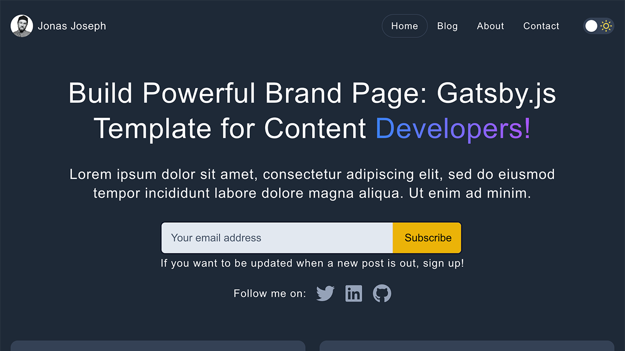 DevBlog is a modern, stylish Tailwind CSS template for use as a personal or for multi-purpose purposes blog theme powered by React and GatsbyJS v5 and packed with various components.